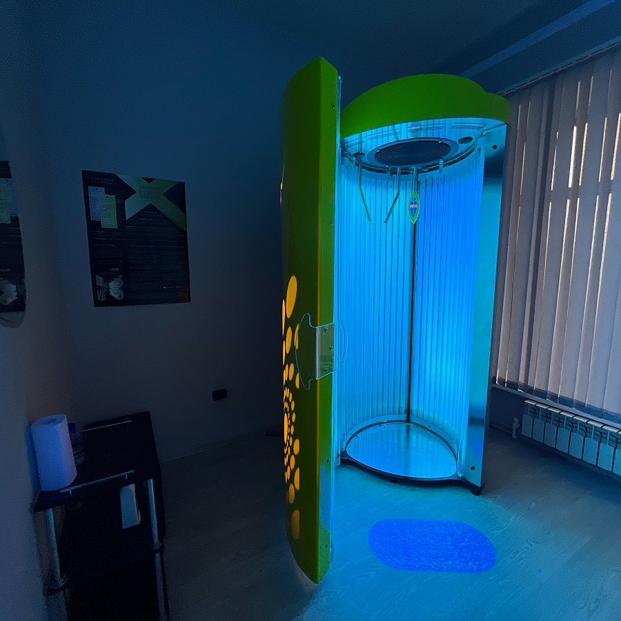 Вертикальный солярий Technosole X Sun оснащен 48 абсолютно новыми лампами мощностью 180 Вт.